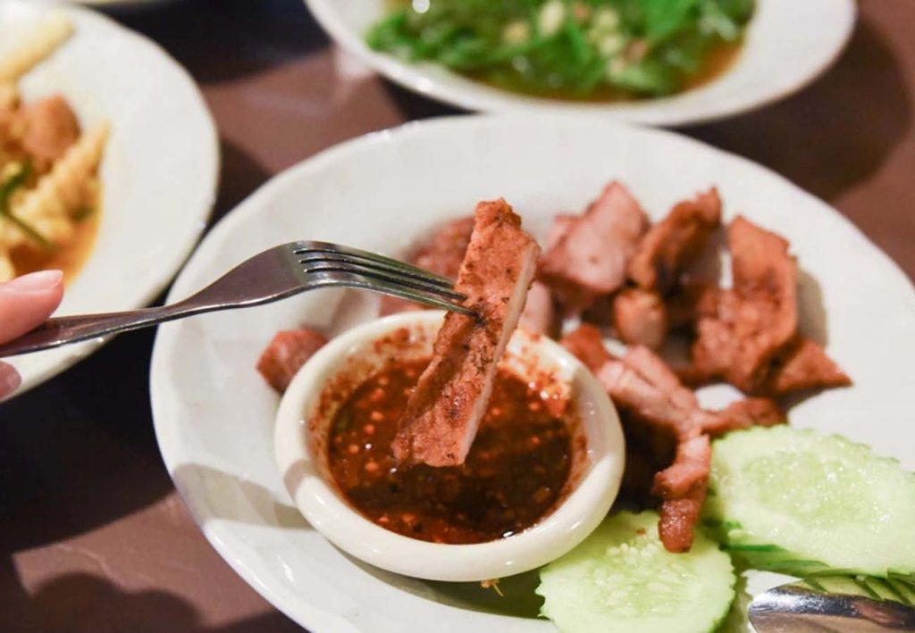 几乎每个来Tong Tem Toh用餐的食客都会被这道菜征服。精选的猪颈肉油花均匀,肥瘦相间,采用炭火炙烤的方式都不减其滑嫩程度,入口即化的口感让人欲罢不能。再搭配磨成粉的干辣椒和鱼露调和而成的辣椒酱,外壳焦脆,内里鲜美多汁,让人吃得根本停不下来。