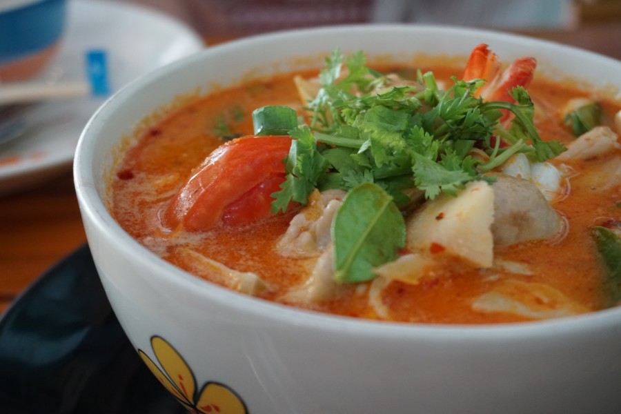 说到泰国美食,怎能不提冬阴功汤?这道被誉为泰国的“国汤”的美食,以其独特的酸辣口感和丰富的香料层次,让人一试难忘。椰奶的醇厚、鲜虾的甜美、香茅的清新、柠檬叶的芬芳,所有这些食材在炖煮的过程中,仿佛进行了一场味觉的交响乐,将各种香料的味道充分融合,最终呈现出一碗令人陶醉的汤品。每一口喝下去,都能感受到香料的热烈和汤汁的醇厚,仿佛带你穿越到了那个充满热带风情的国度。