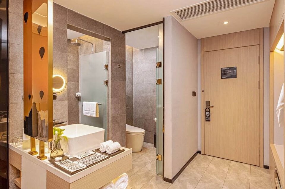 顶层的Sky Bar 更是日落小酌的理想之所白天你的私人泳池是碧海蓝天的画框入夜整片泰国湾都成了你的派对背景左手托着冰镇鸡尾酒右手触碰天际线西哈努克港的壮丽全景尽收眼底每一秒都过成海岛假日。