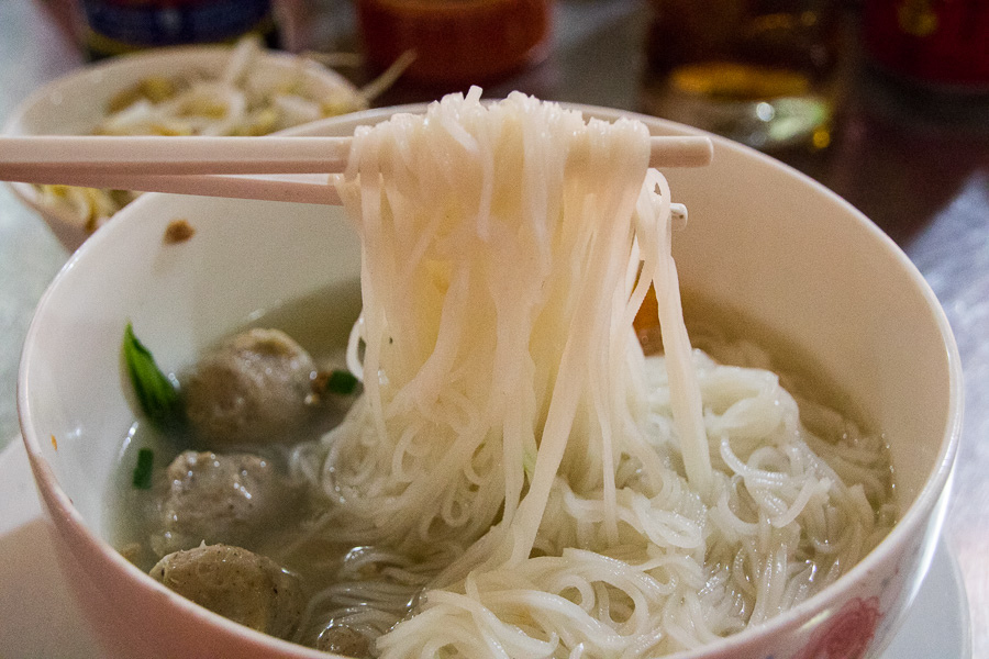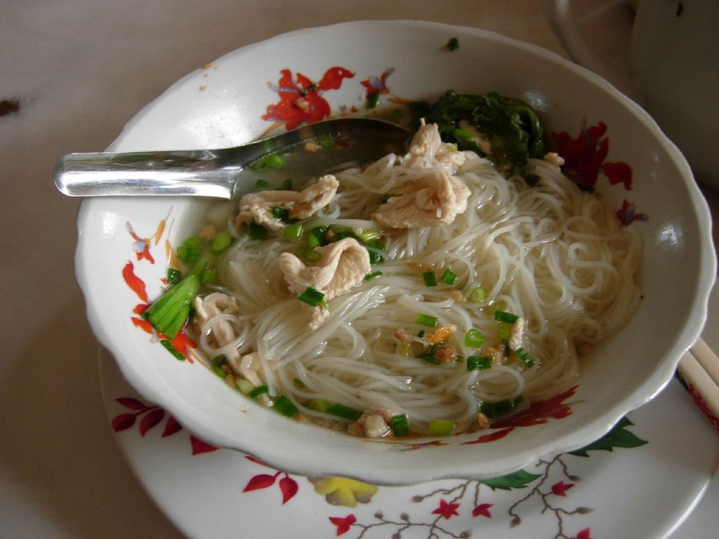 这道早餐特别普遍,清淡爽口、肉香浓郁。汤底用猪骨熬成,配上滑爽的米粉、猪肉片、炸蒜和香葱,热气腾腾上一碗,特暖心。米粉现煮现捞,吃起来弹牙有劲。