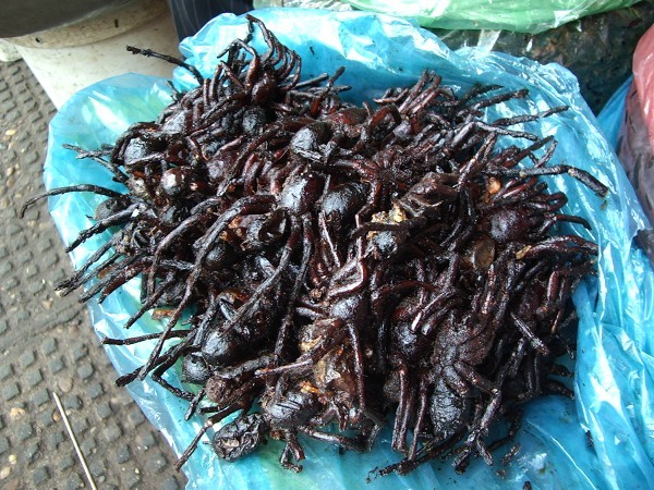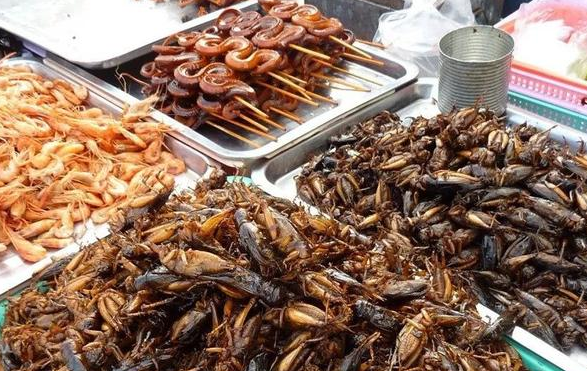 柬埔寨人可不怕昆虫,炸蜘蛛、蟋蟀、蚱蜢全都能下肚。这道小吃外焦里嫩、酥脆香口,有的还撒上辣椒粉和柠檬叶碎。处理过程挺讲究,要先去毒腺、清洗,再用热油酥炸,配啤酒刚刚好。