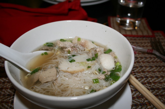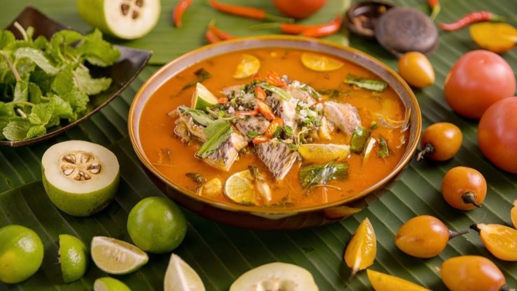 这道汤偏酸带微辣,用的是淡水鱼、番茄、罗望子和柬式香料。喝起来开胃解腻,尤其适合热天。鱼先炖煮去腥,再加各种料慢炖入味,最后撒上香菜和洋葱圈提香。