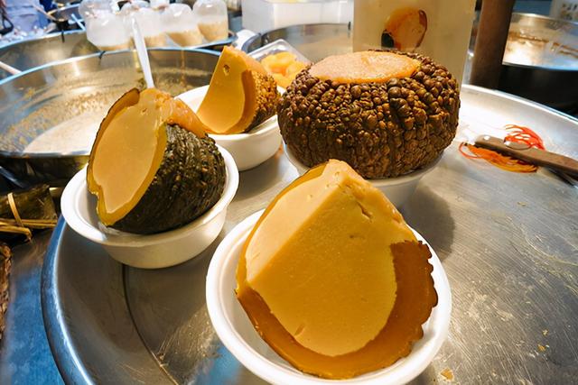 地道的柬式甜品,甜而不腻。南瓜外壳里面填满鸡蛋、椰奶和糖混合成的布丁液,再蒸熟。吃的时候,南瓜的香甜混着布丁的滑嫩,是饭后刚刚好的收尾。