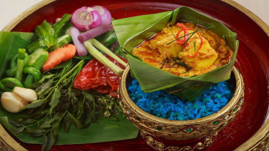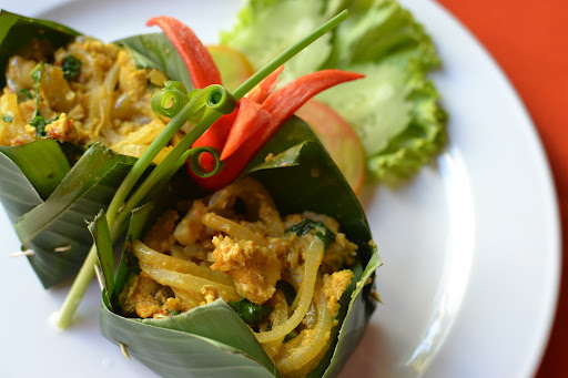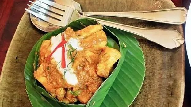 这是柬埔寨的“国菜”,吃过的人几乎都夸。它的味道偏香甜带点椰香,口感软糯像蒸蛋,鱼肉嫩滑不腥。做法是把鱼肉和椰浆、鸡蛋、柬式咖喱糊混合,装进香蕉叶小碗里蒸熟,外观也很有民族味。