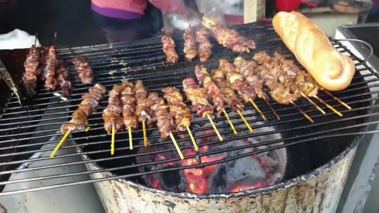 街头随处可见的烤肉摊,最受欢迎的就是这款。肉香浓郁、略带甜味,嚼劲十足。牛肉提前用鱼露、糖、蒜泥和香料腌制几个小时,再穿串慢火炭烤,边烤边刷汁儿,香味飘三条街。