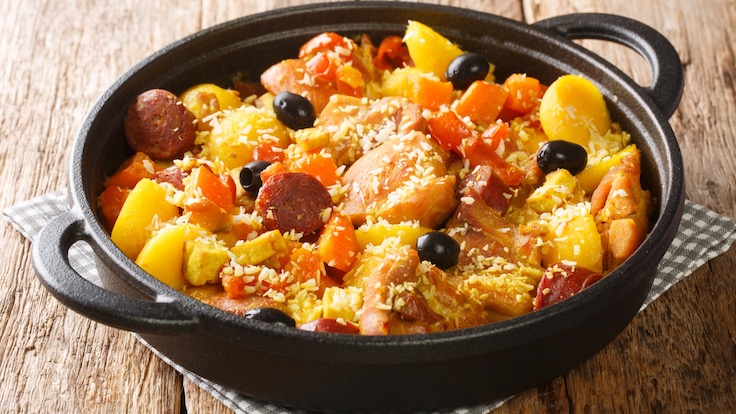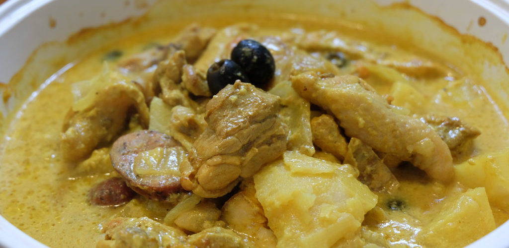 在澳门,葡国鸡是「最葡萄牙的中国菜」。16世纪,葡萄牙水手将非洲香料、印度咖喱与本地椰奶结合,创造出这道「混血」料理。鸡肉先炸后炖,土豆吸饱椰奶咖喱汤汁,米饭拌入汤汁中,咸鲜微辣中带着椰香。老字号「番茄屋」的葡国鸡,用澳门本地土鸡与椰浆,搭配葡萄牙红酒,上桌时砂锅仍在「咕嘟」作响。澳门人常配一杯冰柠檬茶,在殖民与本土的味觉碰撞中,感受这座城市的包容与韧性。