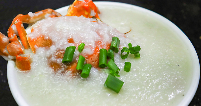 在澳门,水蟹粥是凌晨三点的治愈良药。渔民将内港捕获的未成蟹(水蟹)与东北大米同熬,蟹壳释放的鲜甜渗入米粒,蟹肉拆成丝状融入粥底,最后撒上胡椒粉与葱花。义顺牛奶公司的粥锅从傍晚开始煨煮,至凌晨达到最佳状态——米粒化开成絮,蟹黄如金沙悬浮,每一勺都能舀到蟹肉与米浆的交融。澳门人常配一碟油炸鬼(油条),蘸粥食用,咸鲜与酥脆在口中碰撞出渔港的晨光。