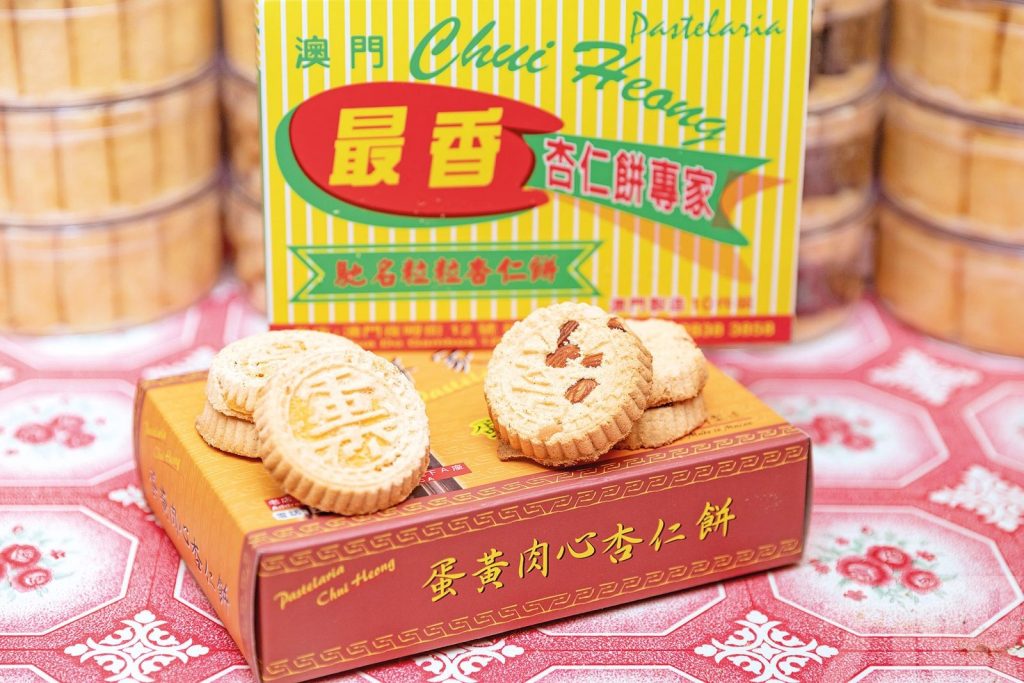 钜记手信的杏仁饼,是澳门人带往世界的「文化信物」。绿豆粉与杏仁碎混合,经石磨研磨成细腻粉末,压入木模后,用炭火慢烤至边缘金黄。最传统的是「光身杏仁饼」,无夹心无糖霜,仅靠杏仁的油脂香与绿豆的清甜取胜。新派推出芝麻、核桃、陈皮口味,但老字号仍坚持手工捶打——师傅用木槌将杏仁碎敲至「雪花状」,保证每一口都能尝到颗粒感。咬开时,「沙沙」声与杏仁香在口中炸开,是澳门人童年的集体记忆。