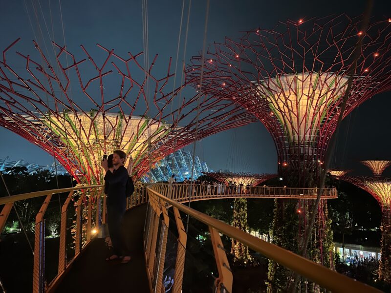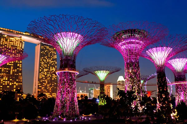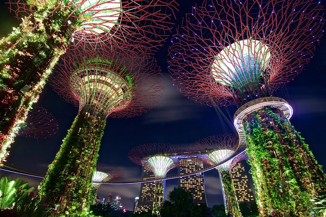 夜幕中,美妙的音乐响起,擎天大树会随着音乐,呈现出不同的色彩。结合建筑、雕刻与华丽之美的意大利大型彩灯,正在滨海湾花园展现。