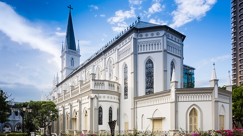【赞美广场】是世界仅存的几个女修道院之一,新加坡重要的历史古迹。原为圣婴耶稣修道院,位于新加坡市中心的维多利亚街。修道院用了一百多年,后来的建筑结合了现代和哥特式古典建筑风格,由美丽的五彩琉璃拼饰而成教堂和孤儿院,前院设计了人工瀑布与喷泉,是迄今较古老的驻足参观地,为游客提供了具有历史意义的休憩场所。市政区的经典标志,新古典主义风格建筑内有茵绿草坪、大理石瀑布和庭院从一所学校华丽变身为时尚生活广场。新古典主义风格建筑内有茵绿草坪、大理石瀑布和庭院。