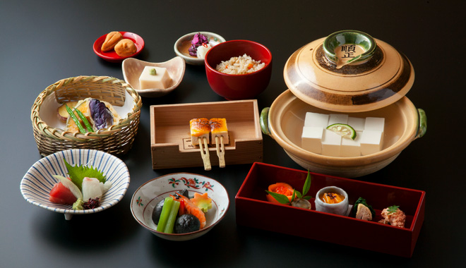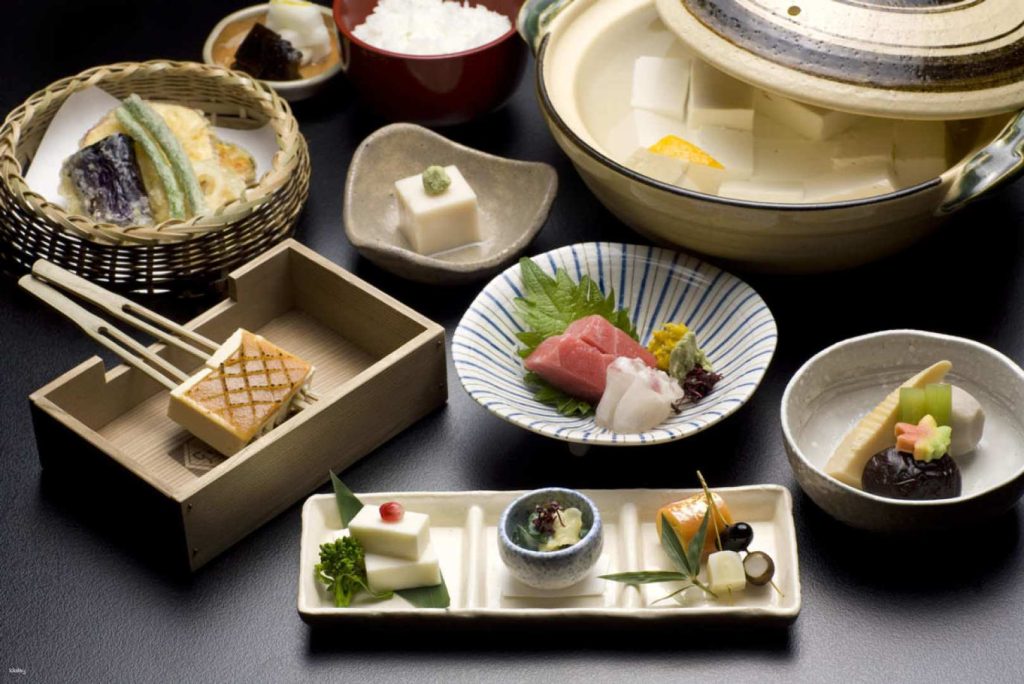 招牌「汤豆腐怀石」把自家石磨豆乳以低温凝固,入口绸缎质地。高汤只用利尻昆布与枸杞慢熬 6 小时,88℃恰好是豆香最饱和却不易散的甜点位,服务员全程用耐热木桶盛着加热,保持冒微泡不沸腾。
