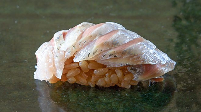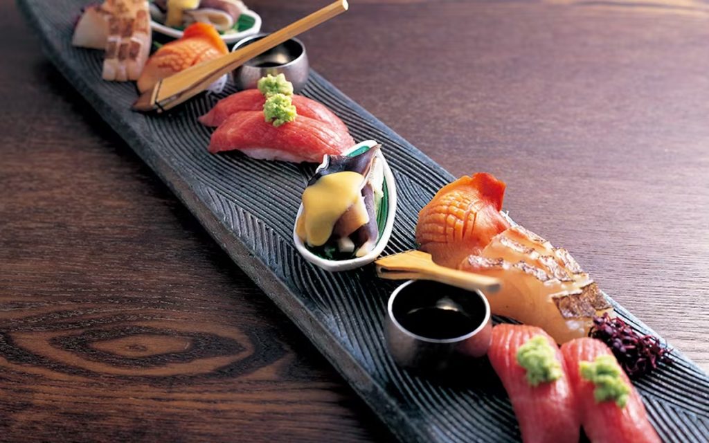 夏季小鰤先盐揉 20 分钟再冲冰水,紧致却无生腥;招牌赤身用冻龄4天本鲔,刷「煮切」酱后直接入口,酸甜层次像喝淡梅子酒。