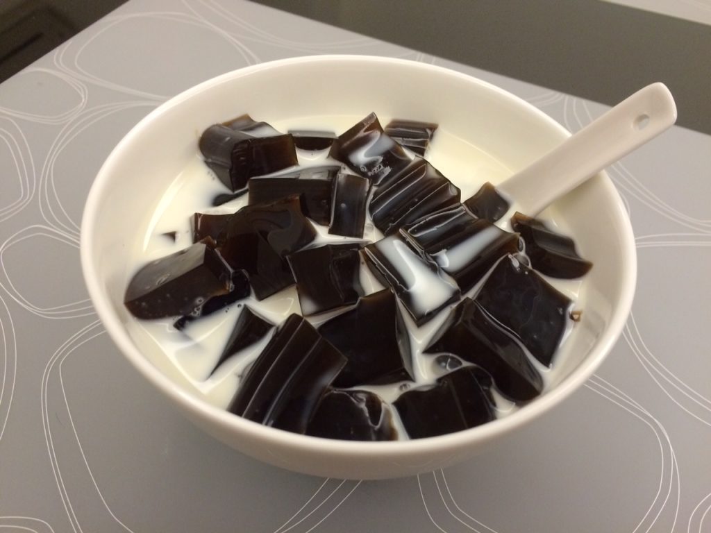 仙草冻的颜色很丰富,比如粉色和绿色,因此它很受孩子们的欢迎。它往往用小碗出售,除了刨冰外,还会放入西米、漂白绿豆和椰浆。