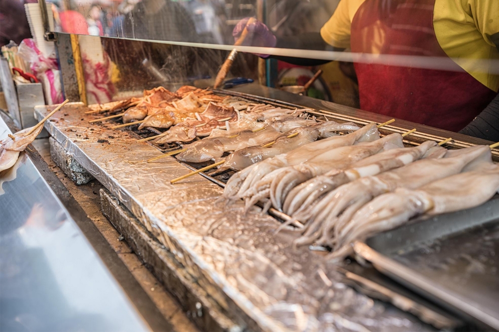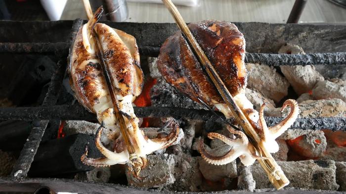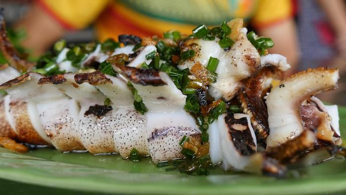 您会在柬埔寨诸如西哈努克市和白马市一类的海滨城市,发现海鲜卖家会沿岸叫卖他们制作的烤鱿鱼。