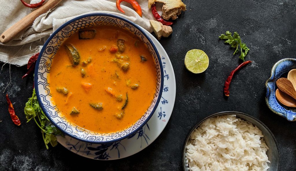 高棉红咖喱没有泰国的咖喱那么辣,同样用椰汁做底料,但辣椒会放得少些。菜品里有牛肉、鸡肉、茄子、绿豆、和鲜椰汁等。因法国文化的影响,高棉红咖喱往往搭配面包一起食用。这道菜品通常在柬埔寨的一些特殊场合才会提供,比如婚礼、家庭聚会或者一些宗教节日。