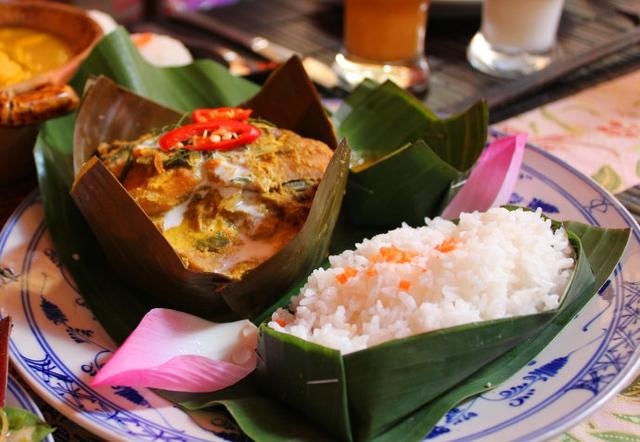 阿莫克鱼是柬埔寨最出名的食物之一,但您会在与其相邻的国家里见到类似的食物。放入当地香料slok ngor的阿莫克鱼略带苦味,使得柬埔寨版本很容易从各个版本中区分开来。