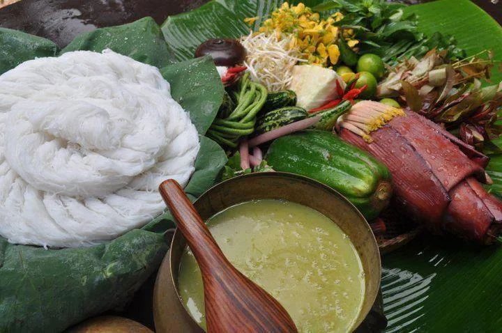 米粉汤往往会作为早餐食物。它由米粉和用柠檬香草、姜黄根以及泰国酸橙制作而成的青咖喱组成,上面覆有薄荷叶、豆芽、绿豆、香蕉花、黄瓜和其他蔬菜。庆典和婚礼上还有红咖喱版本。