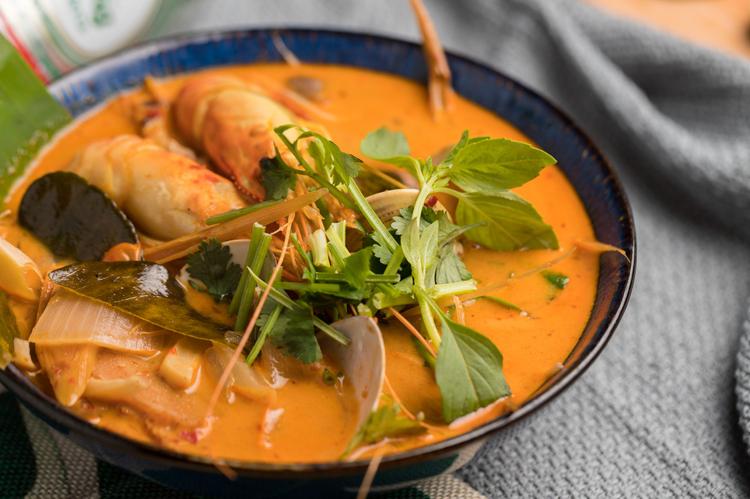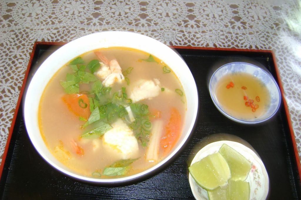 酸辣鱼汤在柬埔寨很受欢迎,里面加入了菠萝和各种香料炖制而成。也可以把鱼换成肉类,鸡肉或者猪肉都可以。另外还有一种酸辣大虾汤或者配有椰子和菠萝的鱼汤也很美味,值得尝试。