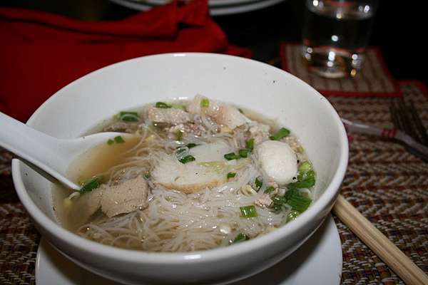 高棉米粉十分美味,吃法跟云南的过桥米线差不多。这道主食胜在它的汤底,主要是由椰子末、花生、虾末、鱼末加上黄咖喱熬制而成,口味十分特别。吃的时候只需要把面条,以及其他附赠的蔬菜倒入汤中,拌匀即可食用。