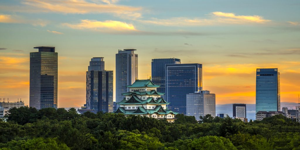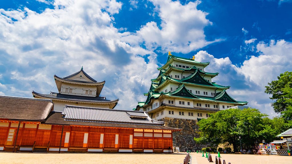 名古屋城为日本国宝,建于1612年,曾是近江国小谷城的主城。城内有完整的城池,其中城堡重建于1959年。可以登上城堡的天守阁层,欣赏城市全景和名古屋市中心的高楼林立。另外还可以观看忍者和武士演出。