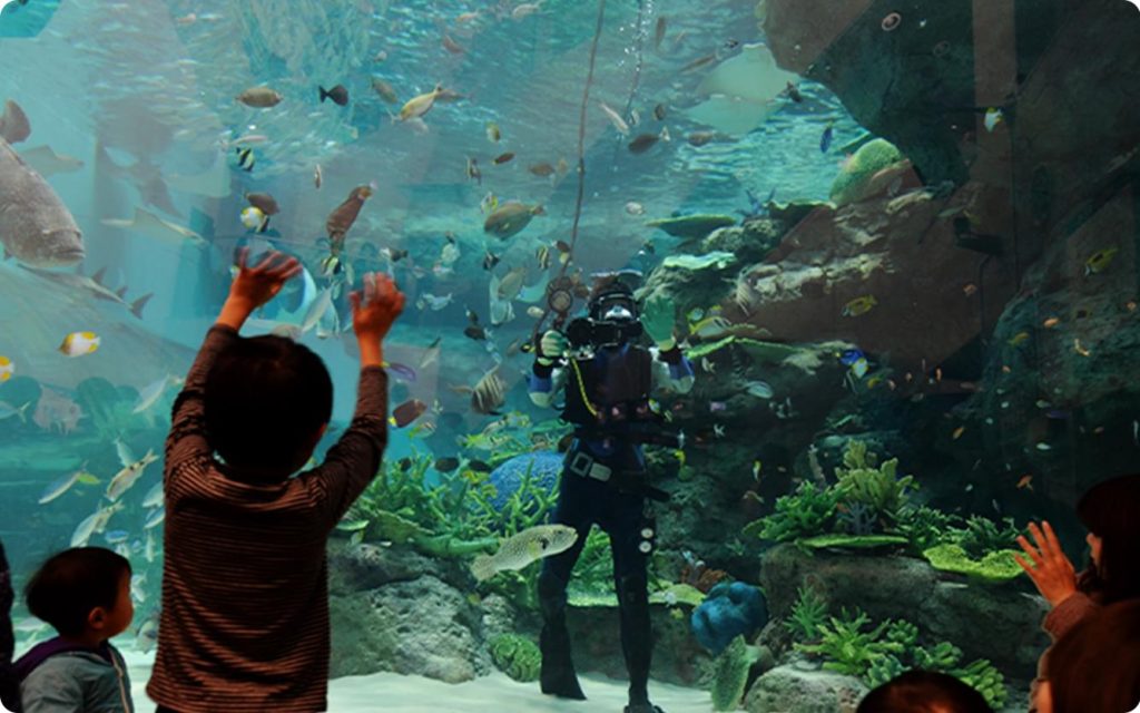 名古屋港水族馆算是名古屋市区个人觉得值得去的景点,有海豚、杀人鲸、白鲸的表演秀可以看,另外还有一些海生动物餵食秀可以看,加上体验活动与看其他海洋生物,呆上半天都没问题。