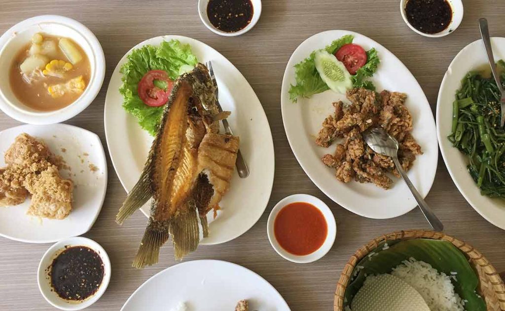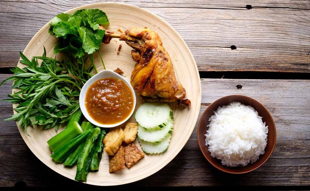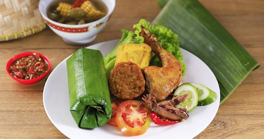 廷贝尔米饭(Nasi Timbel)是用蕉叶包裹的饭团,蕉叶的清香渗入米饭中,粒粒清香。配菜也很丰富,通常与炸鸡、炸牛肉、咸鱼、炸豆腐一起食用,不论是街头摊位,还是大餐馆,都能轻松找到。