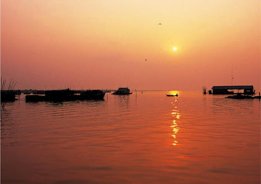 洞里萨湖被称为金边的“母亲河”。它的水天相接和日落的美景如同天堂般的美好,橙黄色夕阳被湖水所吞没的那一刻,实在令人难忘!