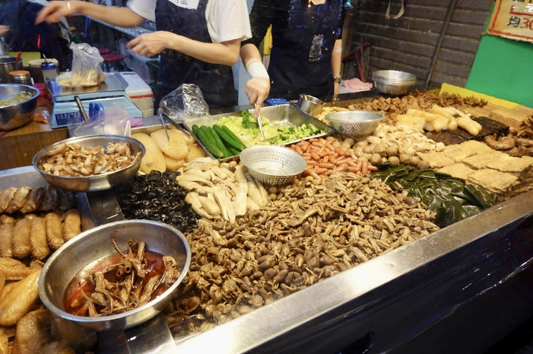 临江街夜市,原名通化夜市,位于大安区临江街与通化街交汇处。由于食客多是本地人,临江街夜市少了商业化,更有人情的味道在里面。猪肉肠、煎饺、鱿鱼羹、臭豆腐、肉燥饭、割包,来临江街夜市通通都要尝一遍。