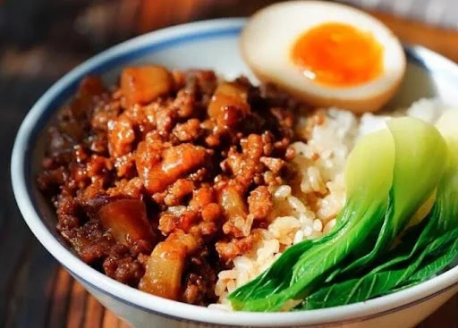 入口肉皮Q弹,肉质软糯,搭配有素菜,很是解腻,再配上卤蛋和咸菜,二十台币就能吃到。
