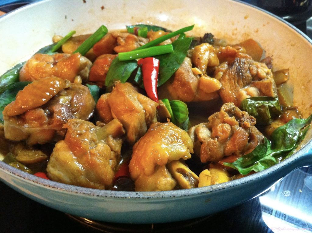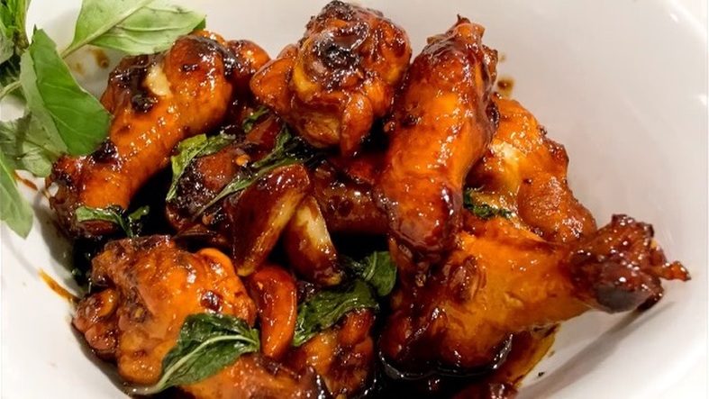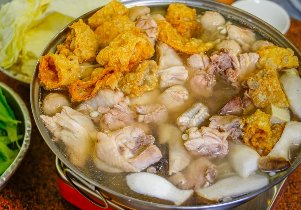 “三杯”指黑芝麻油、米酒、酱油各一杯,主要材料是鸡肉,成菜后口感咸鲜微甜,混着麻油香、九层塔香,层次丰富。