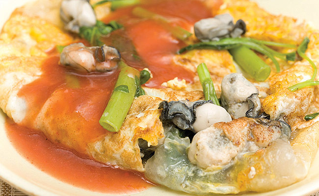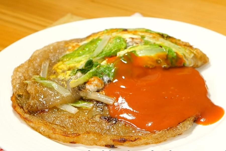 以鲜蚵、鸡蛋、红薯粉、青菜等作为原料,用平底锅煎制而成,吃起来鲜酥嫩滑脆香,口味咸鲜带着淡淡的辣,真的好特别。