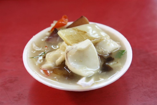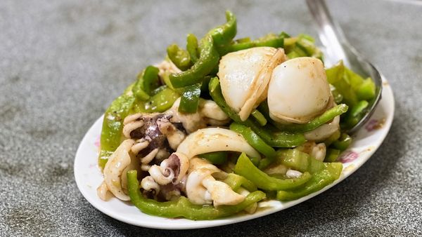 要用猛火炒,花枝入锅十秒就得起锅,加入芡汁,做成汤羹,拌饭吃可以炫好几碗,墨鱼Q弹有嚼劲,味道鲜嫩爽滑,咸中带甜,下饭神器。