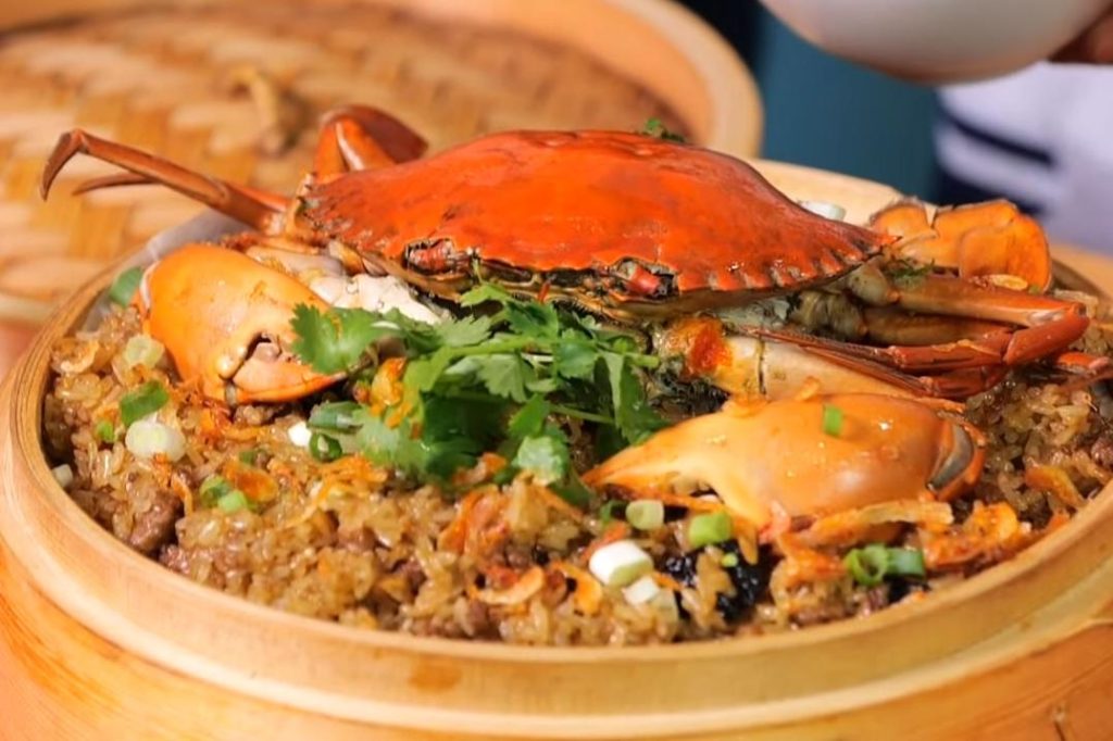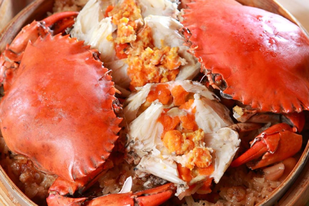 秘诀是蒸的时候要在蟹壳下垫猪油网,米粒吸饱海鲜汁,锅底结的焦脆锅巴比蟹肉还抢手。