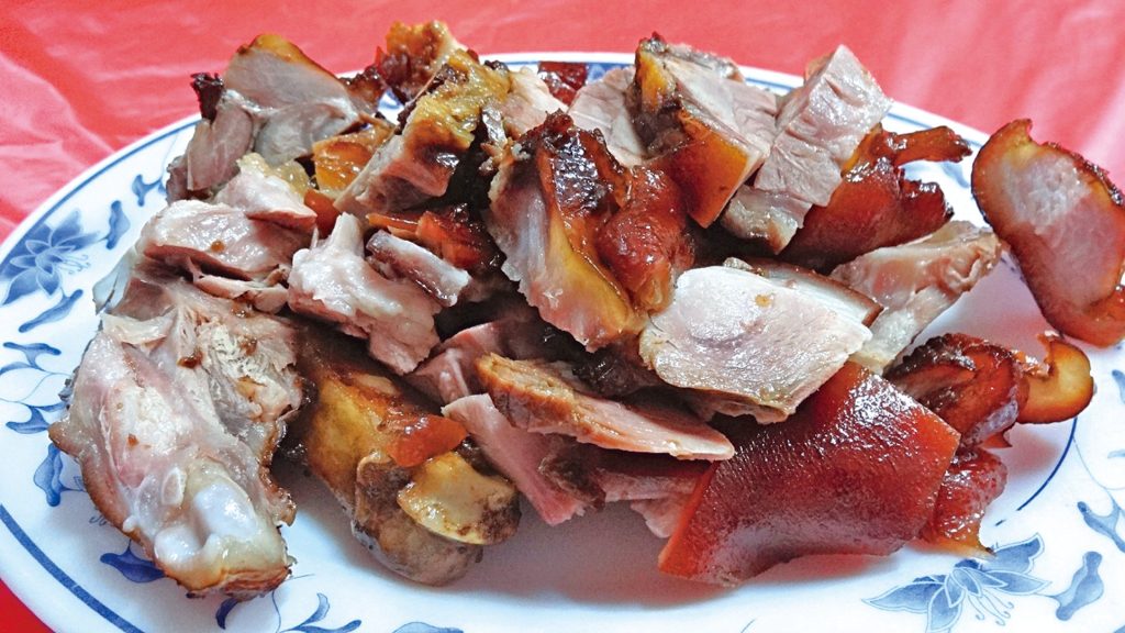 这条万峦街整条路都是卤香,整条路都在卖猪脚,猪脚的切面像玛瑙冻似的,颤巍巍的晃着。