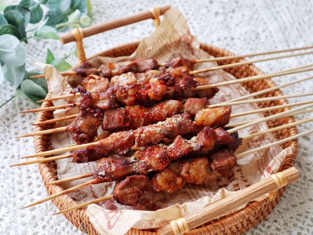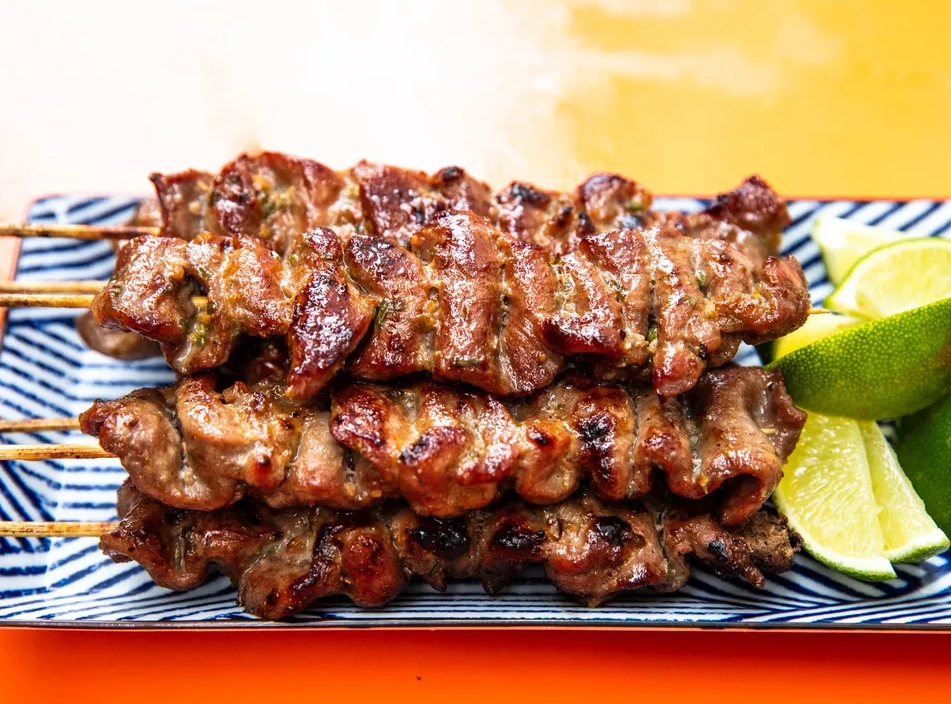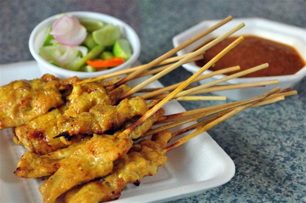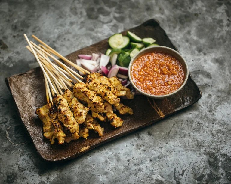 沙爹Satay是印度尼西亚最受欢迎的夜市小吃之一。它由腌制过的肉类穿在竹签上,然后用炭火烤至金黄色。沙爹通常搭配花生酱或甜辣酱食用,口感鲜嫩多汁,香气四溢。