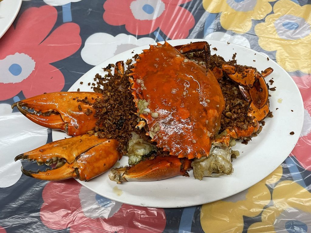 最后,我们来品尝那让人无法抗拒的避风塘炒蟹。这道菜以蒜蓉和辣椒炒制的螃蟹为主角,就像是一场火辣的舞蹈,让人热血沸腾。新鲜的螃蟹肉质鲜嫩,搭配炒得恰到好处的蒜蓉和辣椒,辣中带香,香中带鲜。