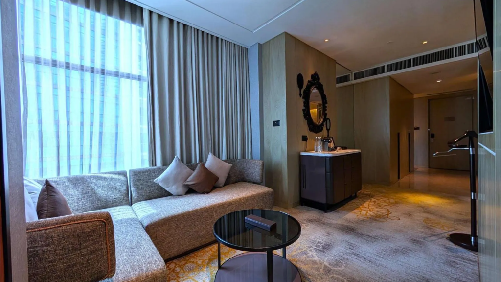 酒店的卧室不大,床品配备了六个枕头供选择。有个很舒适的转角沙发,小孩子当床睡都完全没有问题。而且卧室配备了胶囊咖啡机,需要的可以自己上手。早餐丰富精致,是自助式,味道不错,不需要排队。
