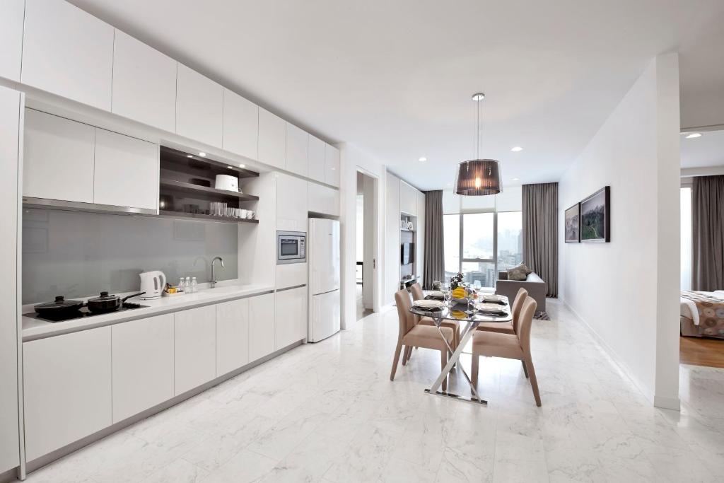 套房有开放式厨房,有冰箱、电磁炉、微波炉等厨具,餐柜里面还有锅碗瓢盆,对吃不惯当地美食的小伙伴来说,相当方便。客房分一卧室和两卧室的,无论你是一家人出行还是带着小朋友出来,都超级适合。