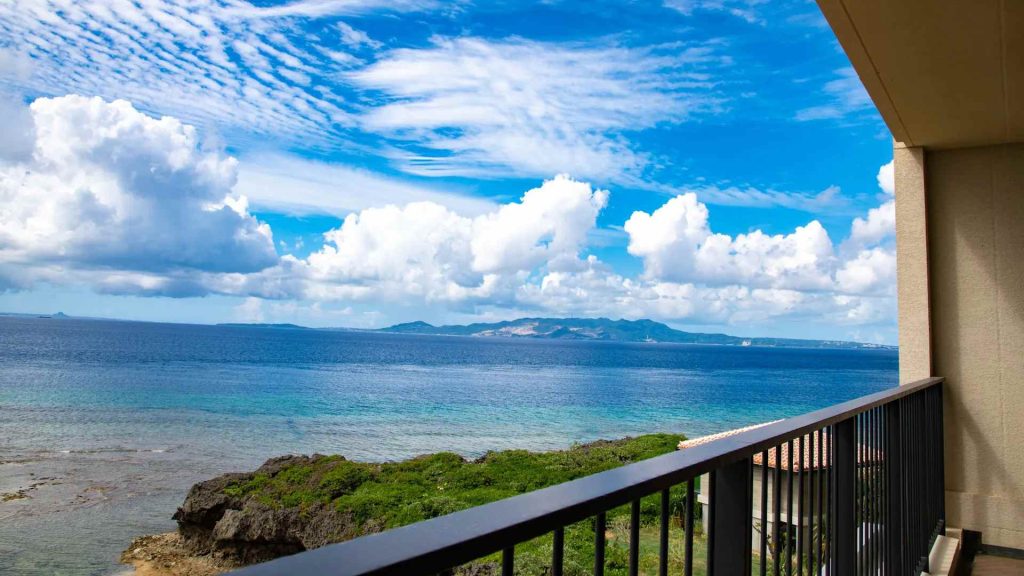 度假村共设344间客房,分为本岛一侧的“海滨别墅”与岛上的“本岛”区域。所有客房均带观海阳台,部分房型可远眺伊江岛的地标城山。最令人惊艳的是酒店利用自然地形打造的多层次水域:室内泳池、使用海水的泻湖与无边际泳池,形成与海平面相接的视觉效果。