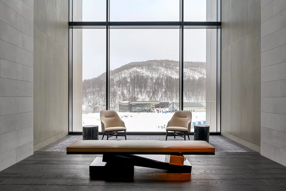 2020年开业的二世谷柏悦酒店坐落于北海道安努普利山花园度假区,是滑雪爱好者梦想的Ski-in/Ski-out天堂。由墨尔本BAR Studio设计的建筑,以巨大落地窗为画框,将羊蹄山的四季美景尽收其中。