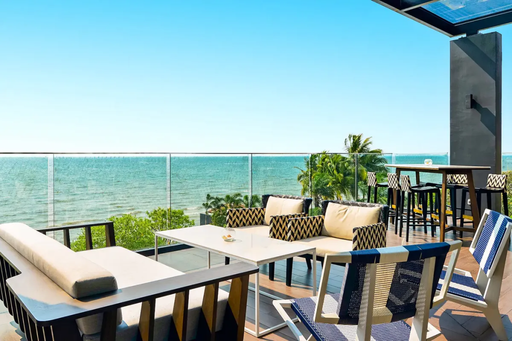 酒店内设有一个设计经典的无边际游泳池,以及可以俯瞰泰国湾全景的平台区域,非常适合打卡。