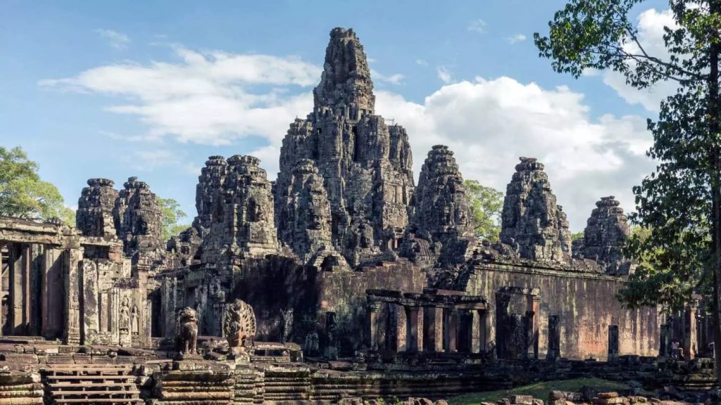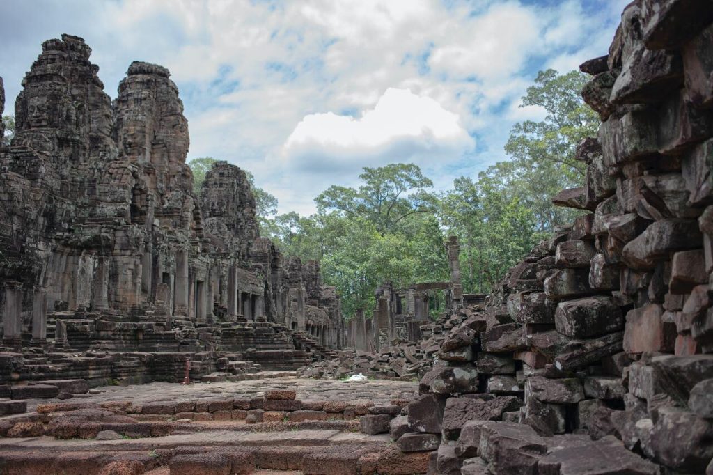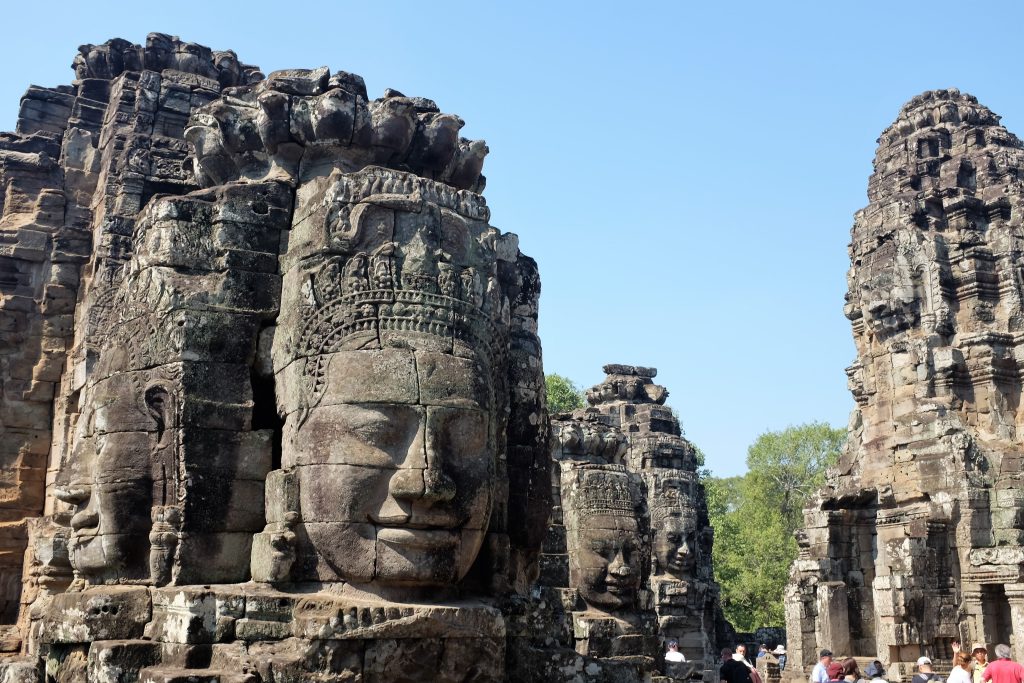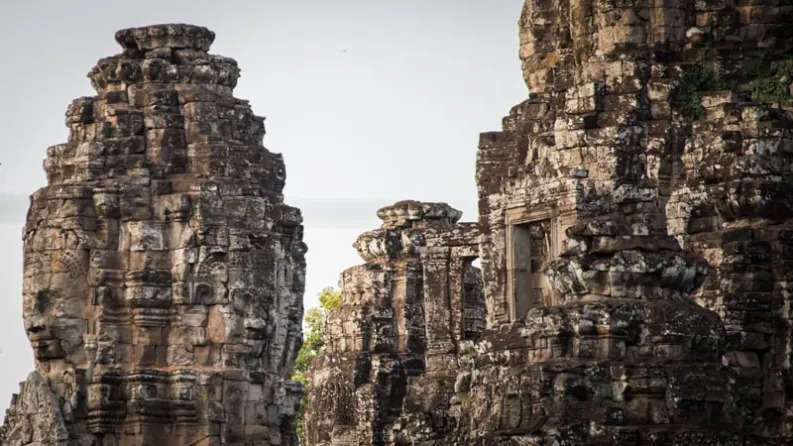 巴戎寺位于吴哥城中心,以众多的四面佛头像而闻名。寺内的四面佛像面带微笑,因此被称为“高棉的微笑”。