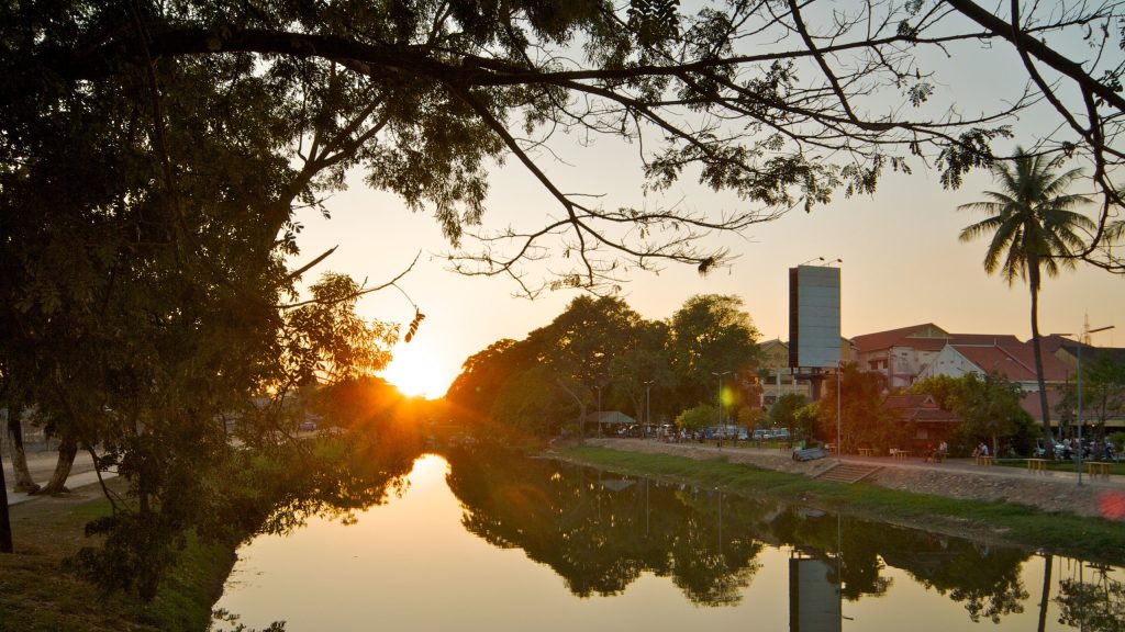 暹粒的地理条件得天独厚,它依傍暹粒河而建,河水悠悠,滋养着这片土地,使之成为一片丰饶的绿洲。城市中,排屋错落有致,从郊外一直延伸至市中心,构成了一幅生动的城市画卷。而文化教育,在这里更是如春草般蓬勃生长,学府林立,书声琅琅,传递着文明的火种。
