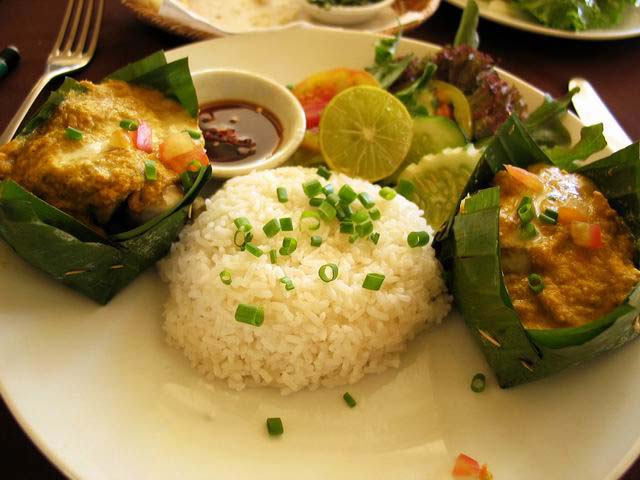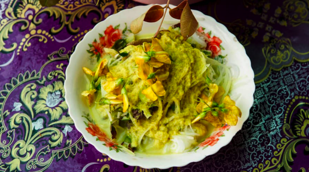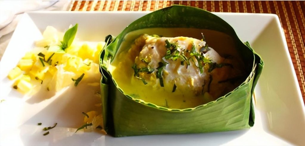 这是柬埔寨最受欢迎的传统高棉美食之一。它通常使用椰奶和各种香料(如柠檬草、高良姜、香茅等)来烹饪,常见的有鱼阿莫克、鸡肉阿莫克或牛肉阿莫克。阿莫克通常盛放在椰子壳或瓷碗中呈现。