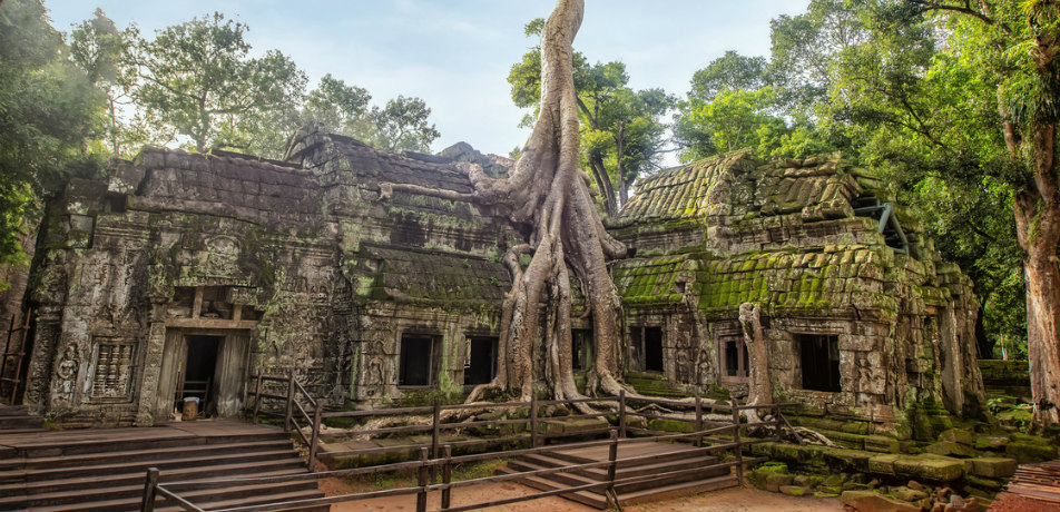 塔布隆寺以其树根与建筑相融合的独特景象而闻名。自然与人文景观在这里完美结合,给人一种神秘的历史感。