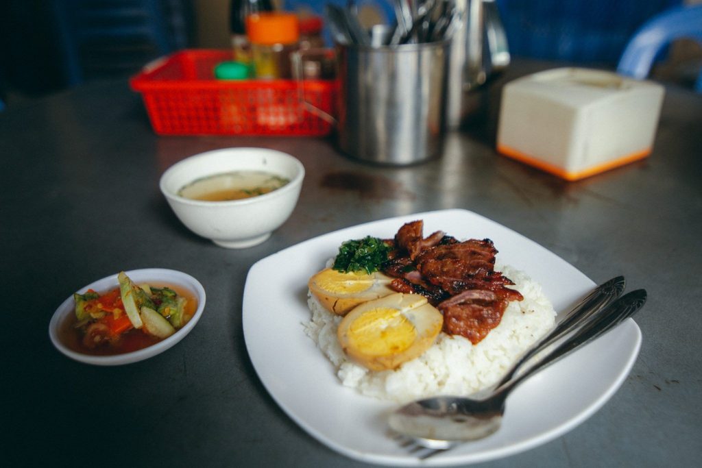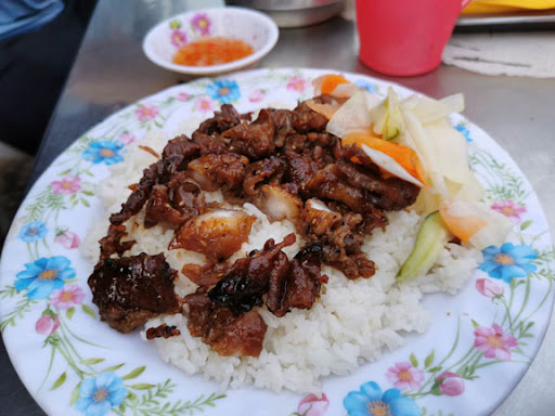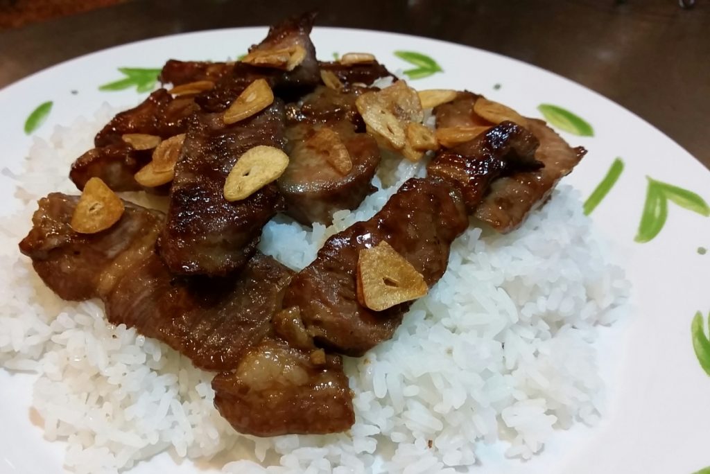 这道菜是用蚝油、酱油和其他调料腌制的牛肉,搭配米饭一起食用,有时还会加入生菜、西红柿和煮熟的鸡蛋。