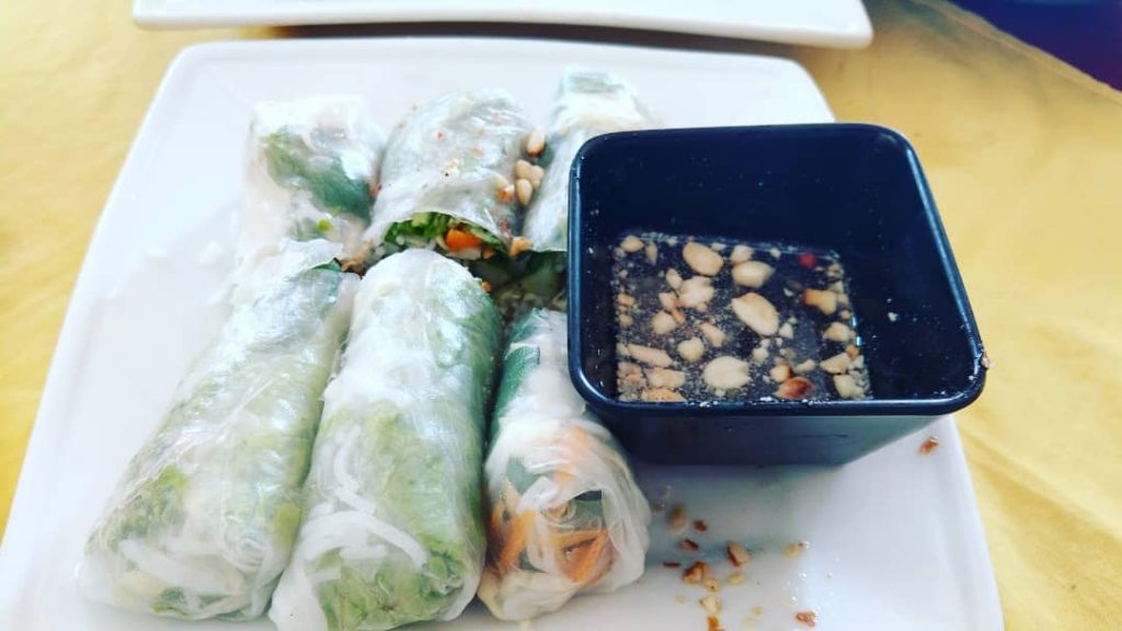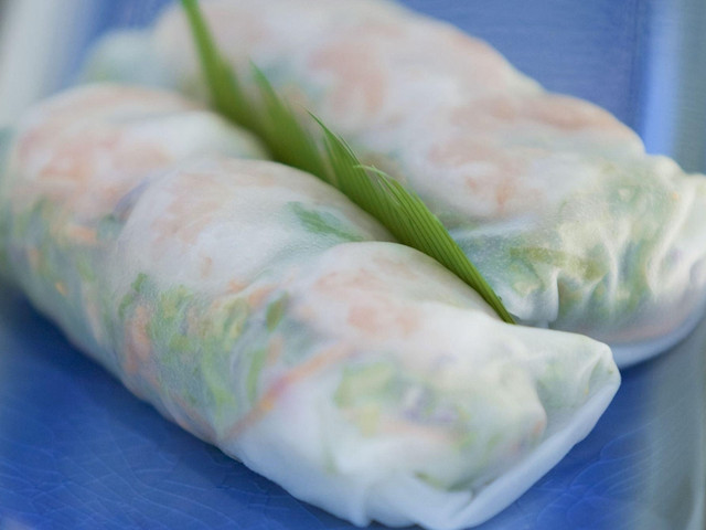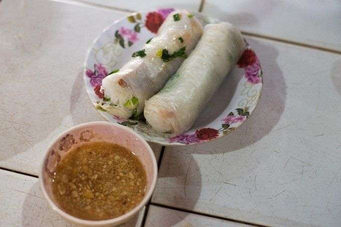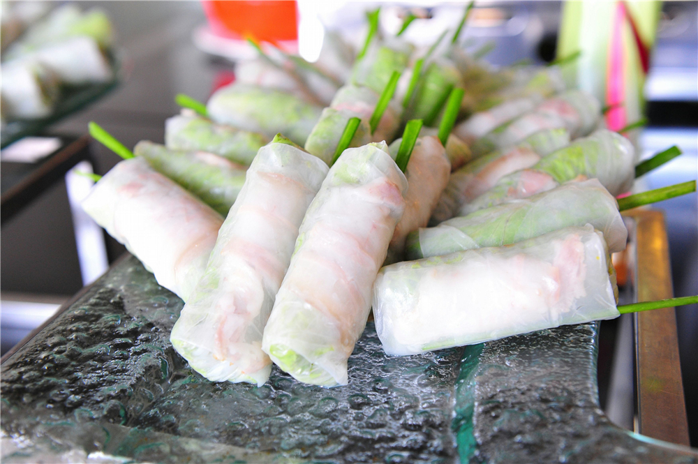 柬埔寨春卷比越南春卷大一些,通常包裹着蔬菜、肉类或虾,并蘸着甜辣酱食用。