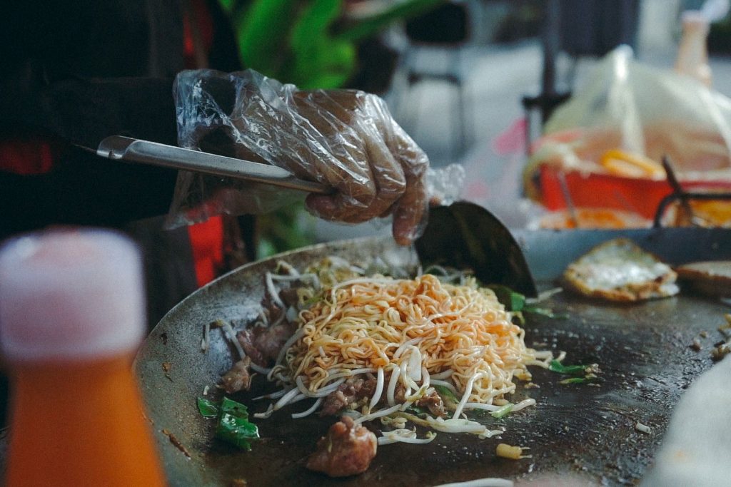 炒米粉是暹粒街头常见的小吃之一,通常加入蔬菜、肉类和海鲜进行翻炒。