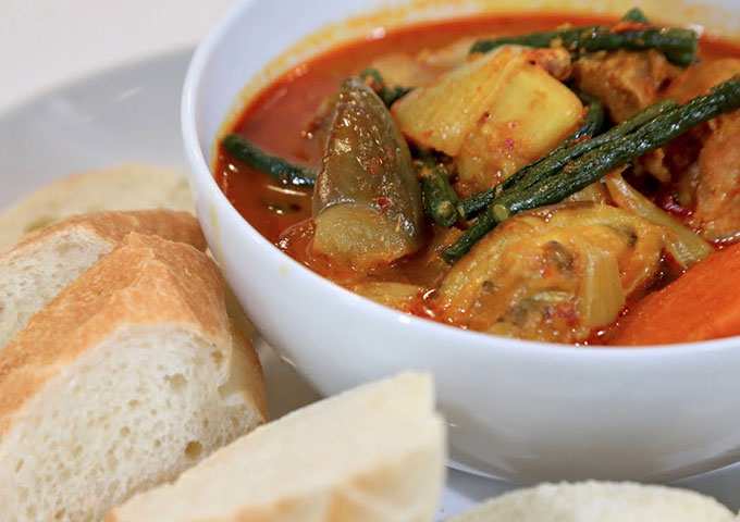 酸味汤是另一道受欢迎的柬埔寨美食,主要成分包括新鲜鱼类和绿色蔬菜,通常带有酸辣口感。