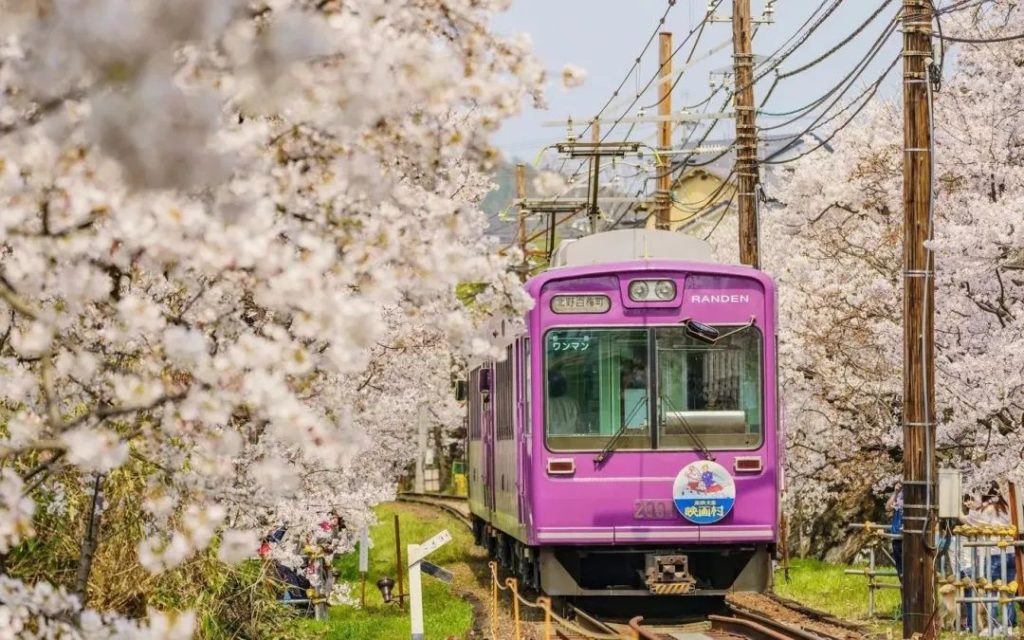主要往返岚山、四条大宫与北野白梅町之间,外观可爱又复古的岚电是京都是唯一仅存的路面电车,已经运行了超过百年。